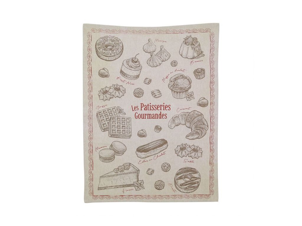 Bavlnená kuchynská utierka s uškom zabalená v sklenenom pohári s viečkom. Motív koláčov s nápisom LES PATISSERIES GOURMANDES. Každý milovník vidieckeho štýlu ocení tento štýlový textil z francúzskej dielne Comptoir de Famille. Rozmer utierky 70x50cm.