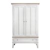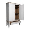 Masívna skriňa kolekcie Esquisse Blanc v bielom patinovanom prevedení v kombinácii s prírodným dubom. Vybavenie skrine: 1 veľká zásuvka, 2 výsuvné police s lištou na vešanie, 2 nastaviteľné police, 2 výsuvné police. Dodáva sa v 2 baleniach (potrebná self montáž). Nábytok firmy Country Corner spĺňa kritériá ekologickej konštrukcie, ktorá zaisťuje certifikované využitie dreva (absencia ťažkých kovov). Údržba: Nepoužívajte chemické prostriedky alebo drsné materiály.
