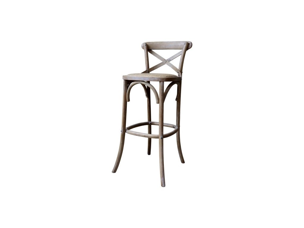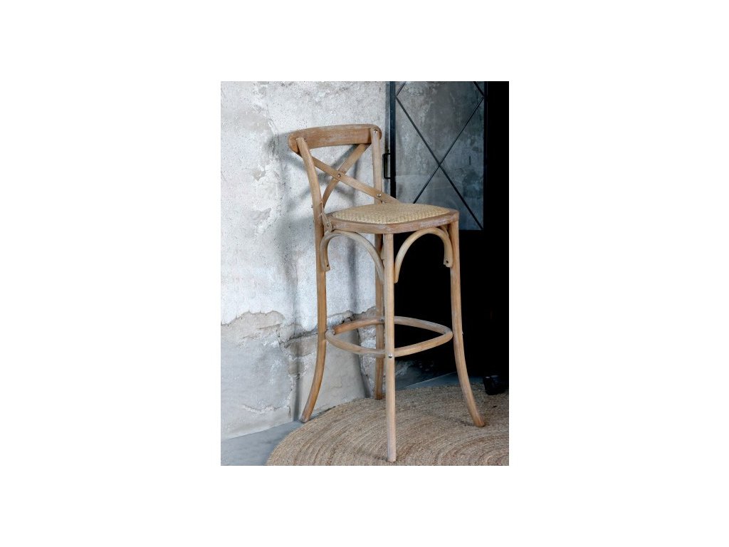 Typická francúzska barová stolička z vypletaného prírodného ratanu s dreveným rámom z ohýbaného dreva.