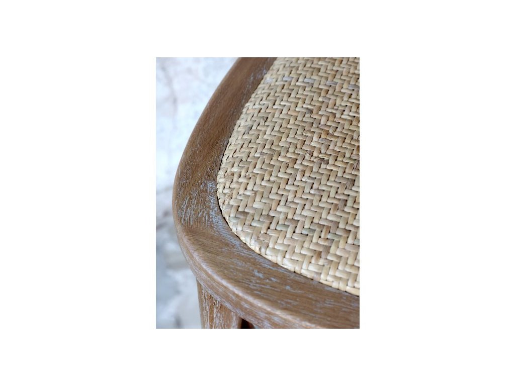 Sedák je jemne polstrovaný a potiahnutý najjemnejším prútím. Stolička je ručne vyrobená z masívneho dreva s elegantným svetlom moridlom, ktoré dokonale ladí s prúteným sedadlom. Krásna stolička k jedálenskému stolu v klasickom dizajne, so stopami francúzskeho vidieckeho štýlu. Jednoduché, ale pozoruhodné detaily svedčia o nadčasovom dizajne, ktorý skvele zapadne do viacerých štýlov interiéru.