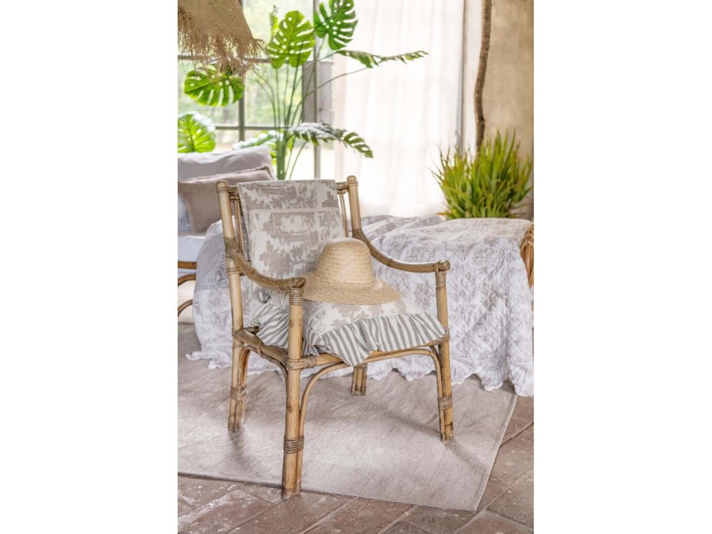 Elegantná bavlnená prikrývka s motívom Toile de Jouy v béžovo-krémovom prevedení je nadčasovým textilným doplnkom do spálne aj obývacieho priestoru. Jemný vzor inšpirovaný francúzskym vidieckym štýlom dodáva interiéru romantickú atmosféru a dokonale zapadne do vintage, shabby chic aj provensálskeho štýlu.