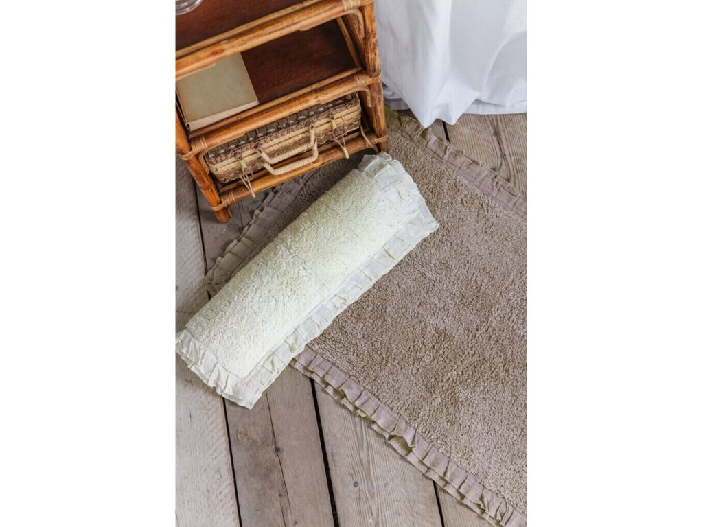 Elegantná a romantická obdĺžniková dlhá rohož z bavlny, ktorá má po obvode volán.