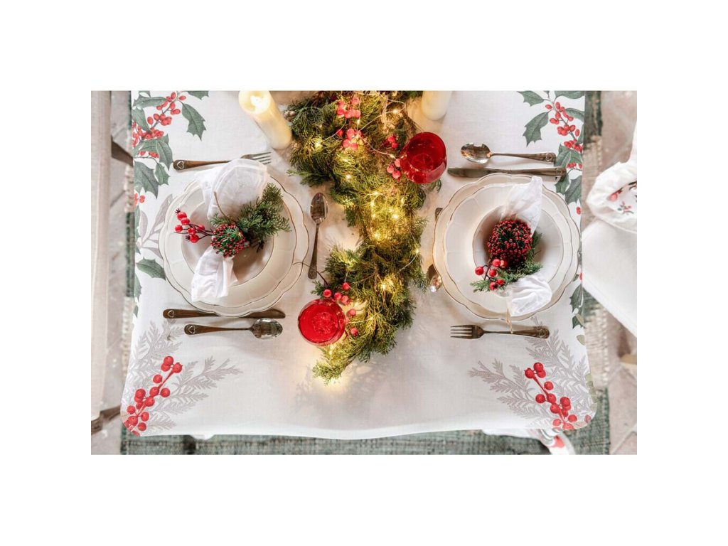 Vianočný bavlnený obrus z kolekcie Sinfonia Natalizia od toskánskeho výrobcu Blanc Mariclò.
