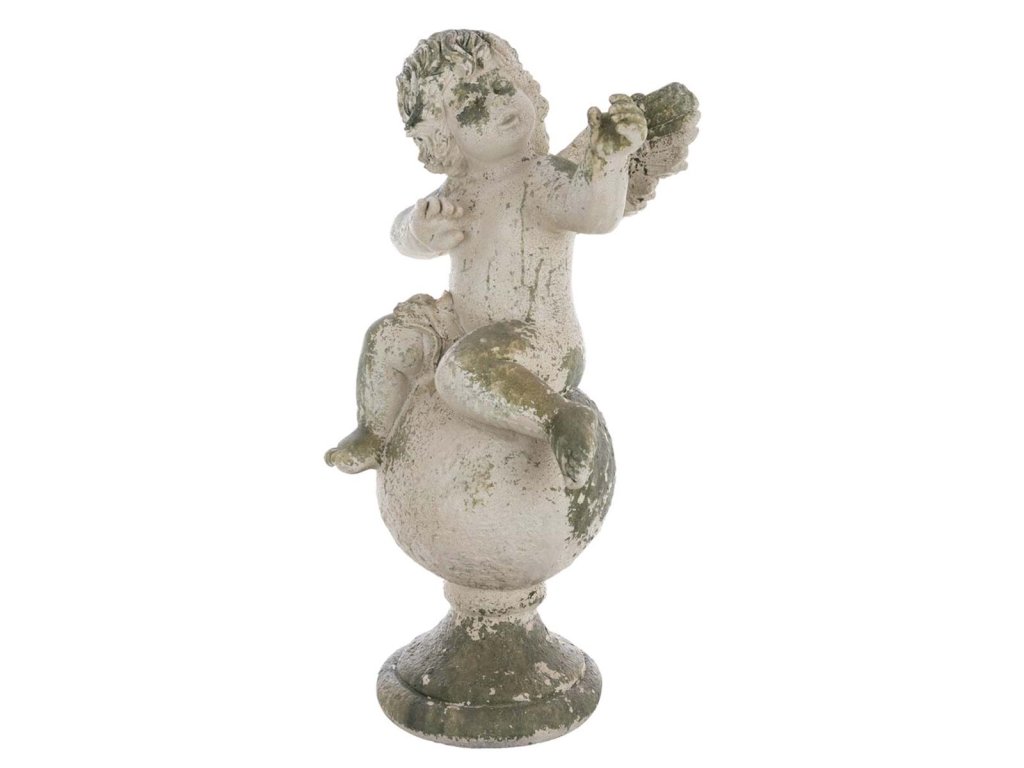 Dekorácia vysokého anjela na podstavci z polyrezinu (replika). Pôsobí starobylo ako z antiky. Kolekcia Trame culturali. Originál z dielne Blanc Mariclo.
