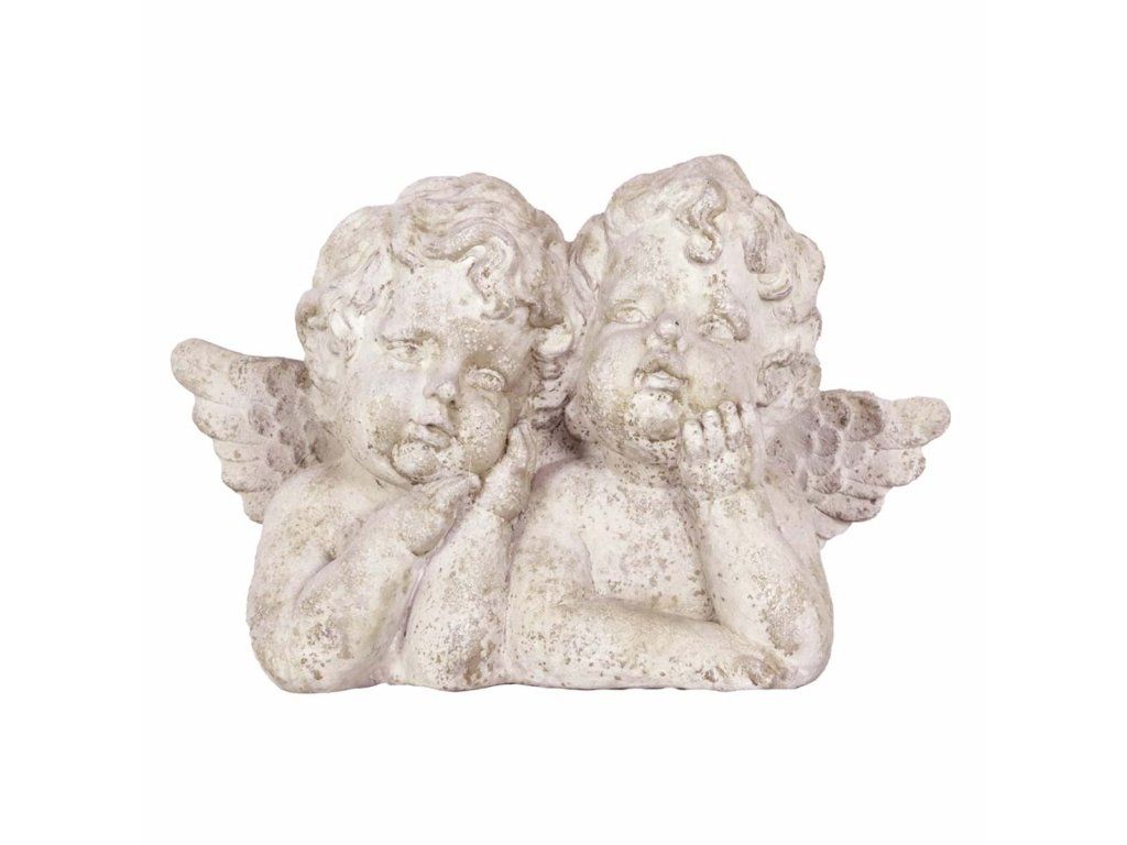 Dekorácia dvojice anjelov z polyrezinu (replika). Pôsobí starobylo ako z antiky. Kolekcia Trame culturali. Originál z dielne Blanc Mariclo. Novinka Leto 2024.