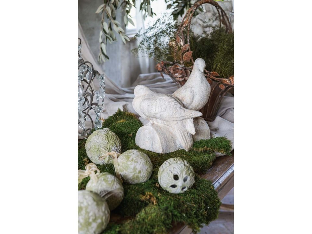 Táto jemná dekorácia dvojice hrdličiek od prestížnej talianskej značky Blanc Mariclo prináša do interiéru symbol lásky, pokoja a čistoty. S romantickým dizajnom a patinovanou úpravou evokuje vintage štýl s dotykom francúzskeho vidieka – ideálny doplnok do rustikálnych, shabby chic či klasických priestorov.