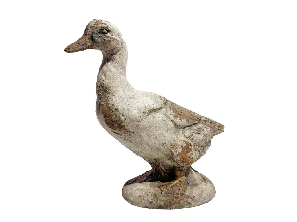 Dekoratívna figúrka kačice z polyrezínu v ošumelom vzhľade s jemnou patinou je štýlovým doplnkom do interiéru v vintage a shabby chic štýle. Realistické spracovanie a tlmené farebné tóny dodávajú dekorácii autentický, starobylý charakter a príjemnú vidiecku atmosféru.