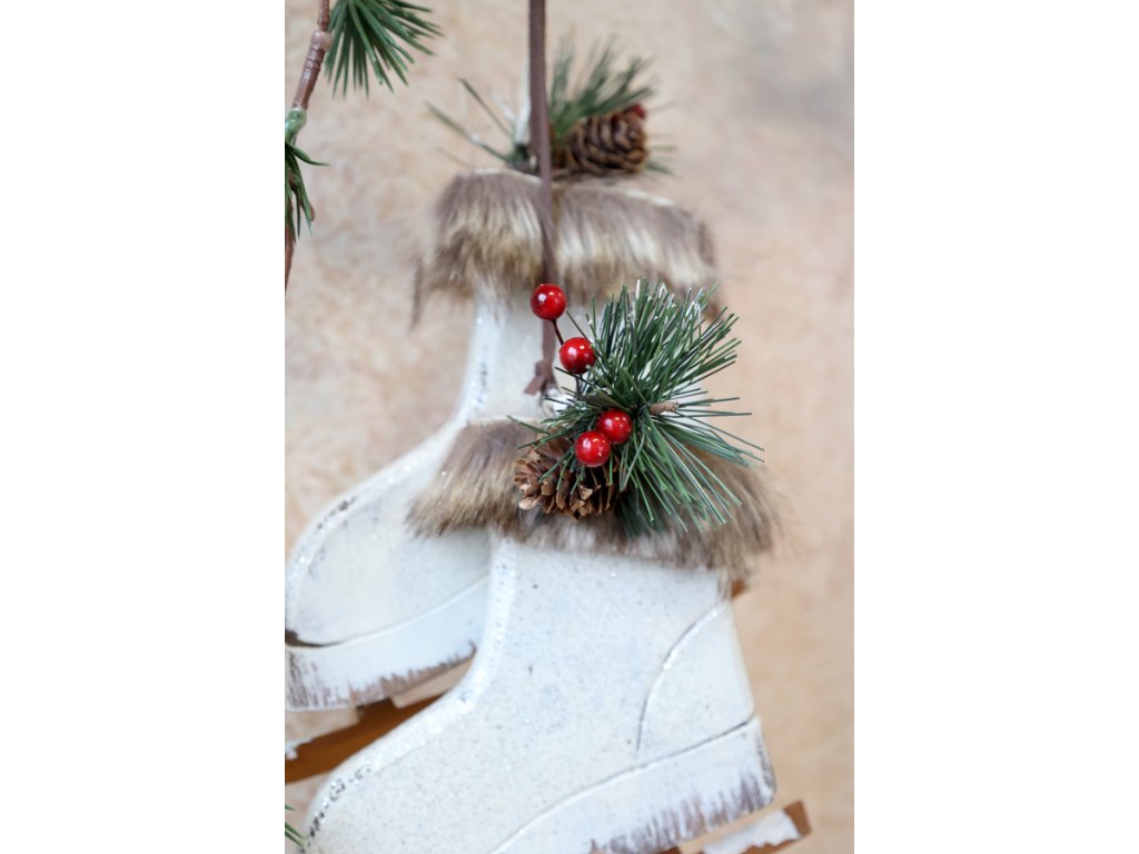 Vneste do svojho domova nostalgickú zimnú atmosféru s jedinečnými vintage dekoratívnymi korčuľami s vetvičkami a šiškami od značky Chic Antique. Tento štýlový doplnok je určený na zavesenie a pôsobí ako spomienka na staré časy plné snehu, radosti a sviatočnej pohody.