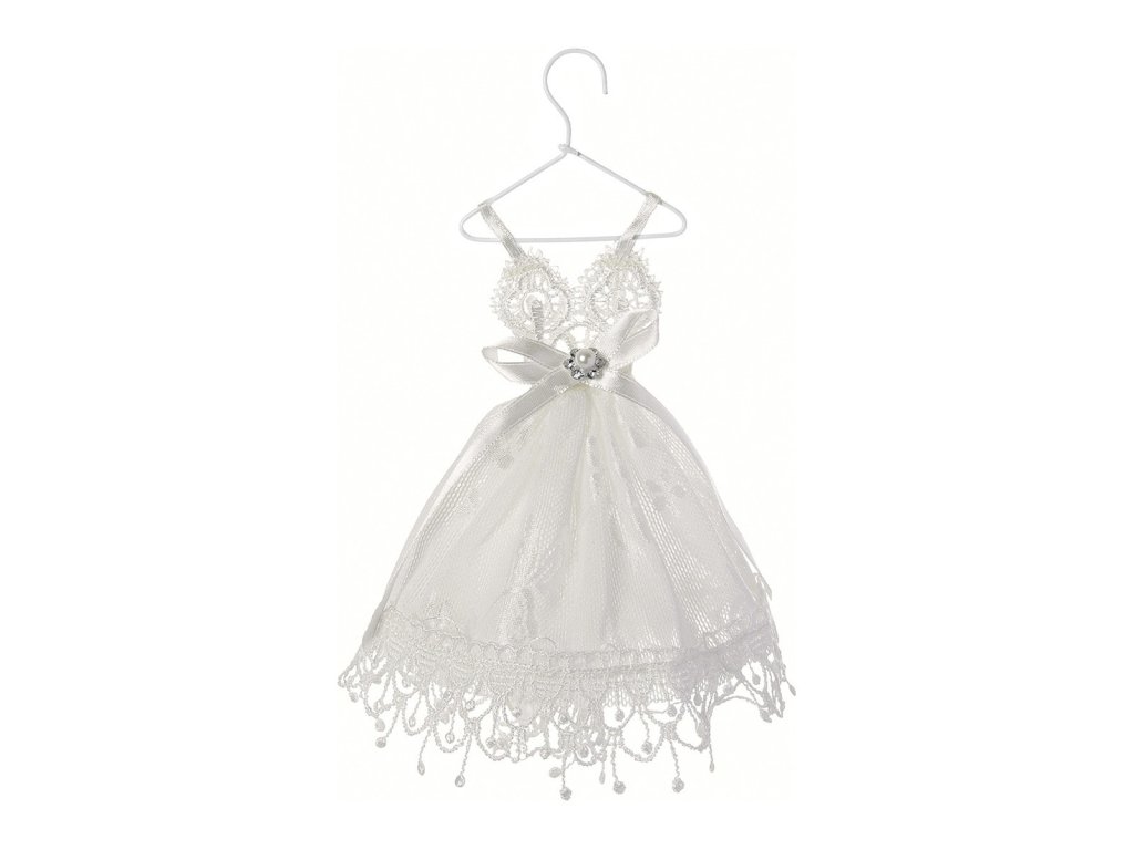 Tieto elegantné svadobné šaty z čipky a organzy sú ideálne na uloženie malých vonných difuzérov (malé vrecko pod sukňou). Vďaka vešiaku ich môžete zavesiť do šatníka.
