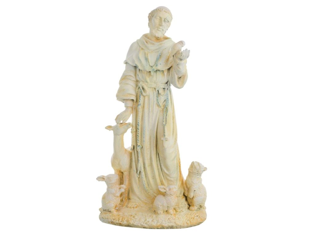 Dekorácia sochy sv. Františka z Assisi Blanc Mariclo (A38903) – polyrezínová socha so zvieratkami.