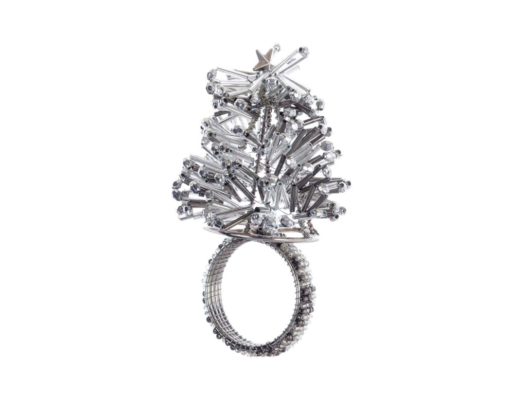 Dekoračný krúžok na servítku s vyšívanými perličkami od toskánskeho výrobcu Blanc Mariclò.