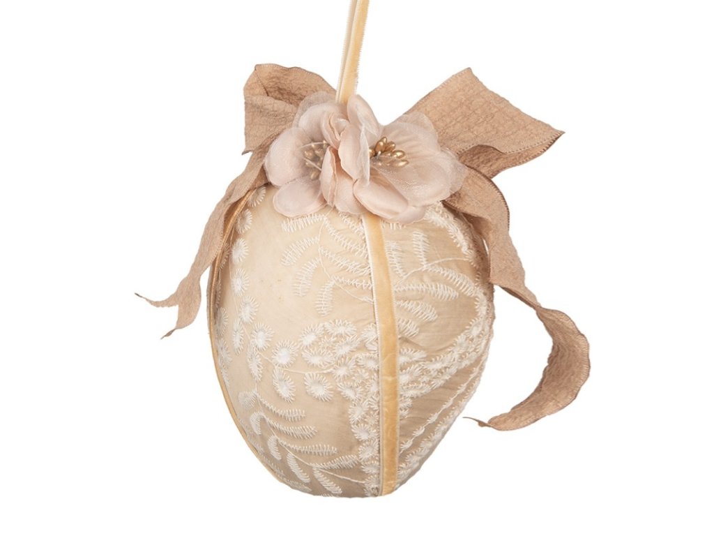 Veľkonočná závesná ozdoba – textilné vajíčko Ø 11 × 17 cm, béžové, Clayre & Eef
