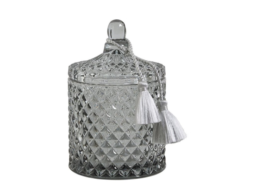 Elegantná dóza na tampóniky Diamond s tenkým skleneným vrúbkovaním zdobí pekný sivý odtieň.