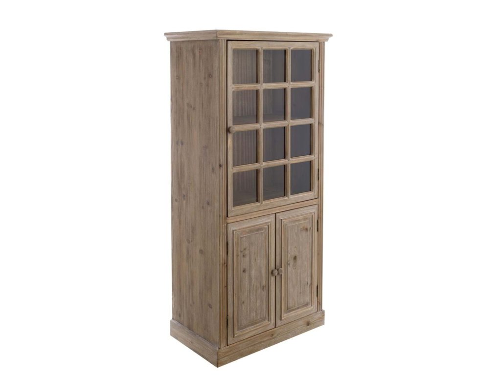 Menšia drevená vitrína z kolekcie Natural Nuances zaujme svojím prirodzeným vzhľadom a nadčasovým dizajnom. Horná časť so sklenenou výplňou umožňuje elegantne vystaviť porcelán, sklo alebo dekorácie, zatiaľ čo spodná časť poskytuje praktický úložný priestor. Kombinácia borovicového dreva a preglejky podčiarkuje autentický prírodný charakter a vnáša do interiéru teplo a útulnosť. Vitrína sa hodí do jedálne, obývačky aj kuchyne zariadenej v rustikálnom, vidieckom alebo prírodnom štýle.