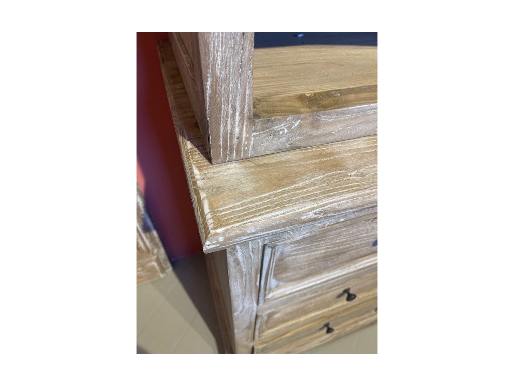 Vitrína Showcase Cabinet z kolekcie Vestigia je impozantný kus nábytku, ktorý okamžite upúta svojou veľkorysou veľkosťou a autentickým charakterom. Vyrobená z recyklovaného cédrového dreva, vyniká jedinečnou kresbou, prirodzenou patinou a robustným spracovaním, ktoré dodáva interiéru hĺbku a originalitu. Horná časť so štyrmi sklenenými dvierkami a policami ponúka ideálny priestor na vystavenie porcelánu, skla, kníh či dekorácií, zatiaľ čo spodná časť s dvanástimi zásuvkami poskytuje veľkorysý úložný priestor na textílie, dokumenty alebo doplnky. Táto vitrína je dominantným prvkom do priestrannej jedálne alebo obývačky zariadenej v rustikálnom, vintage alebo industriálnom štýle.