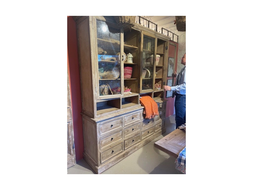 výška: 220 cm • šírka: 200 cm • hĺbka: 50 cm • materiál: recyklované cédrové drevo • počet zásuviek: 12 • dvierka: 4 sklenené • štýl: rustikálny, vintage • použitie: interiér – jedáleň, obývačka • výrobca: Blanc Mariclò