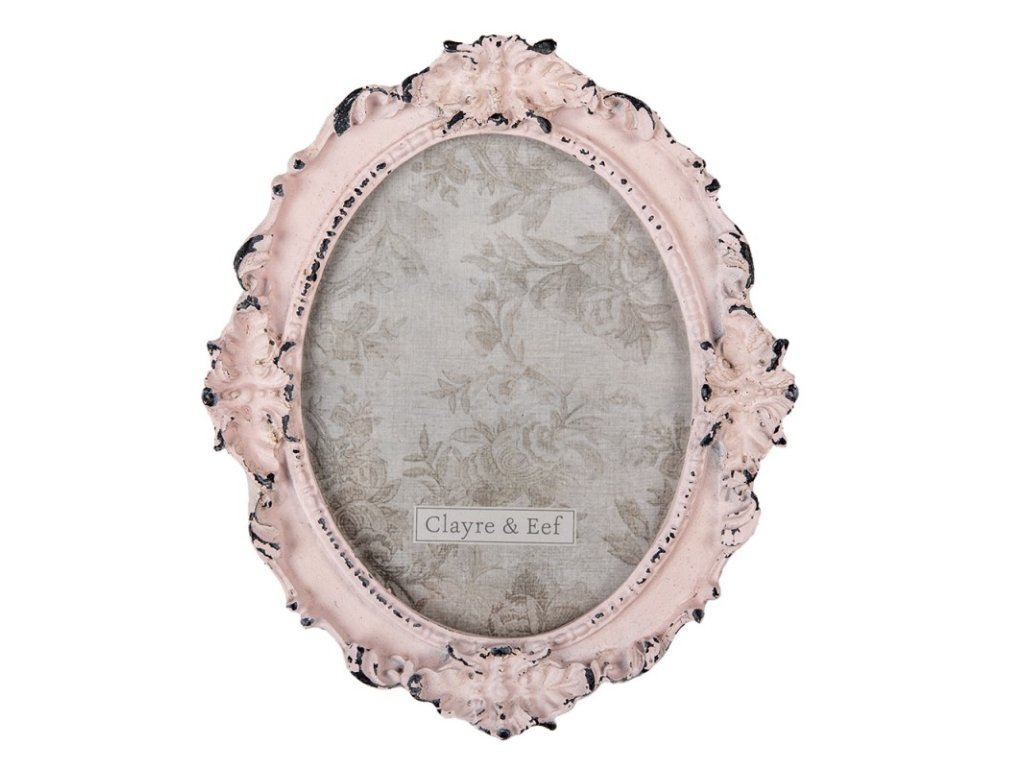 Fotorámik na fotografiu 12 × 15 cm – ružový s kvetmi, oválny, Clayre & Eef