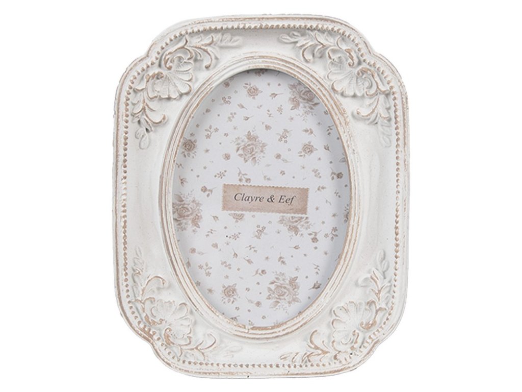 Vintage Fotorámik 10 x 2 x 12 cm - Biely Ornament s Patinou | Oválny Výrez | Clayre & Eef