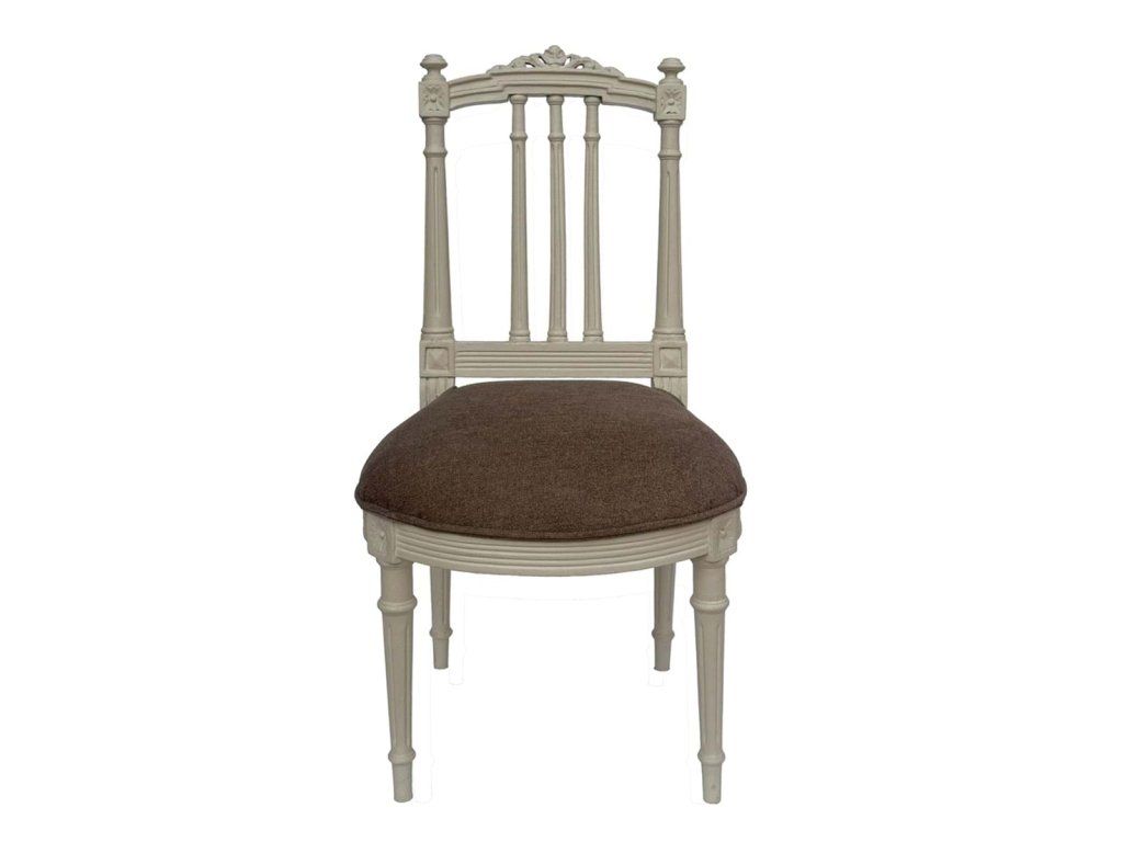 Tvarovaná konštrukcia s jemnými líniami a čalúnený sedák zabezpečujú pohodlné sedenie pri každodennom stolovaní aj slávnostných príležitostiach. Stolička sa skvele hodí k jedálenskému stolu v štýle vidiek, vintage alebo francúzsky chic.