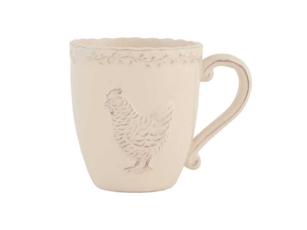 Pôvabný keramický hrnček na čaj, kávu či kakao v krémovej farbe s motívom sliepočky. Objem hrnčeka je 225 ml.
