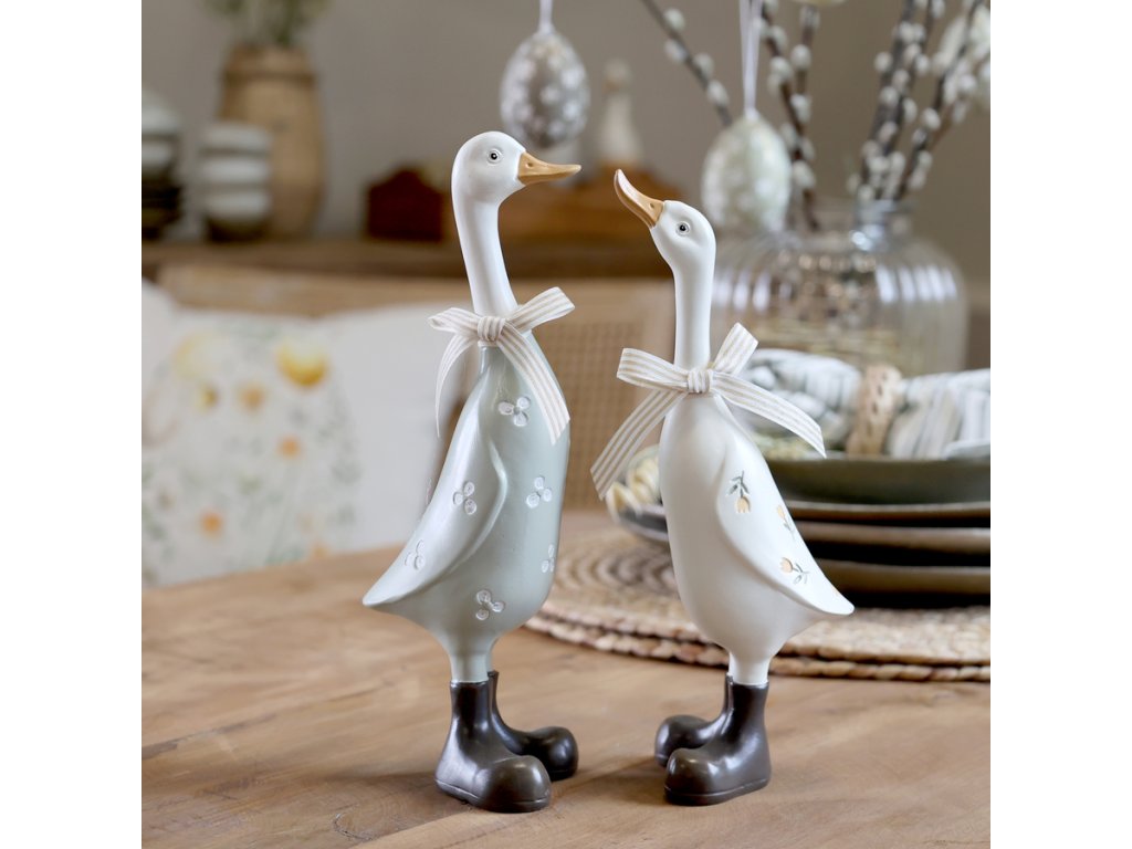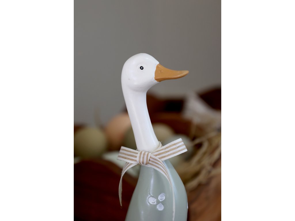 Dekoratívna husička s jemnou mašľou v zelenom prevedení pôsobí sviežo a zároveň romanticky. Ručne maľované detaily zvýrazňujú jej elegantný charakter a dodávajú každej figúrke originálny vzhľad. Zelený odtieň krásne zapadne do jarných aranžmánov aj do interiéru ladeného v prírodnom štýle.