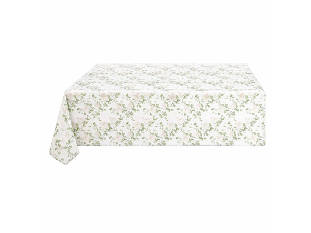 Obrus 140 × 180 cm – jemné odtiene zelenej, bielej a ružovej, Blanc Mariclò - rastlinný vzor s ružami