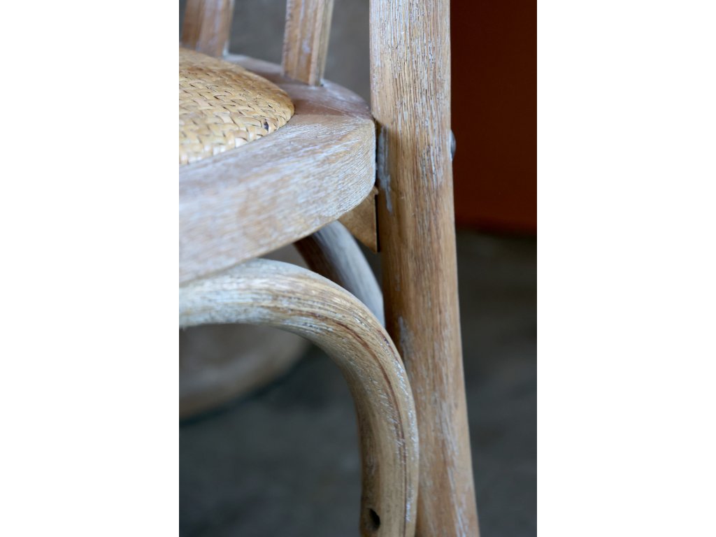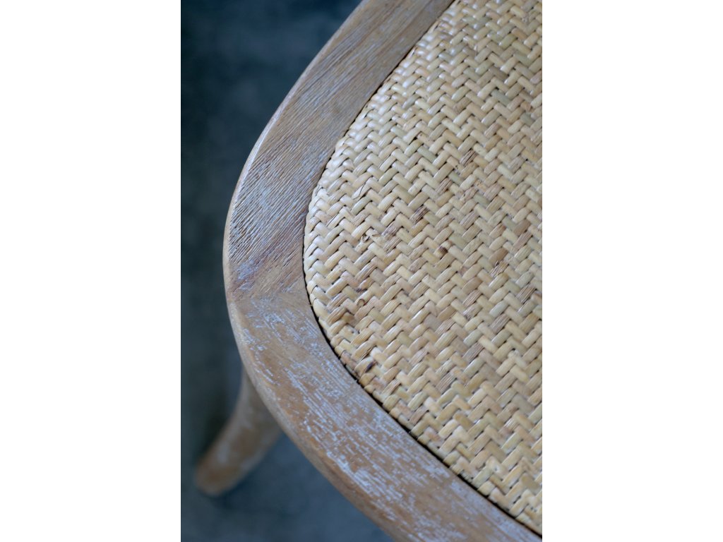 Sedák je jemne polstrovaný a potiahnutý najjemnejším prútím. Stolička je ručne vyrobená z masívneho dreva s elegantným svetlom moridlom, ktoré dokonale ladí s prúteným sedadlom. Krásna stolička k jedálenskému stolu v klasickom dizajne, so stopami francúzskeho vidieckeho štýlu. Jednoduché, ale pozoruhodné detaily svedčia o nadčasovom dizajne, ktorý skvele zapadne do viacerých štýlov interiéru.