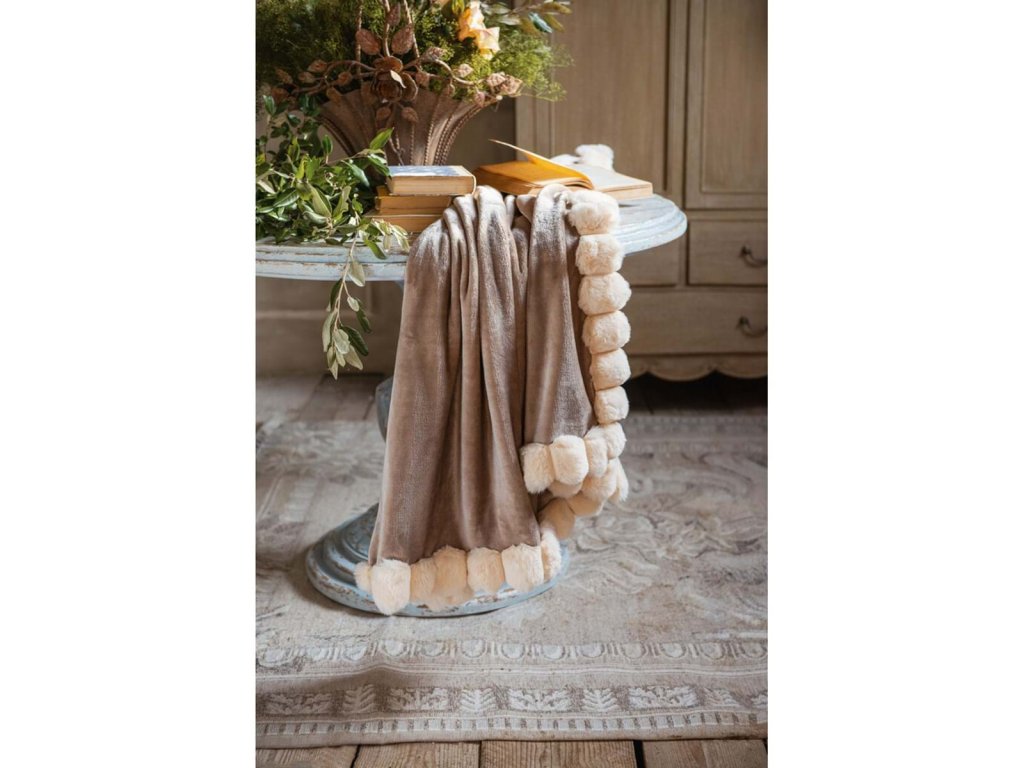 Mäkučká deka s bambuľkami – Blanc MariClo’, hnedobéžová, 140×170 cm, 280 GSM