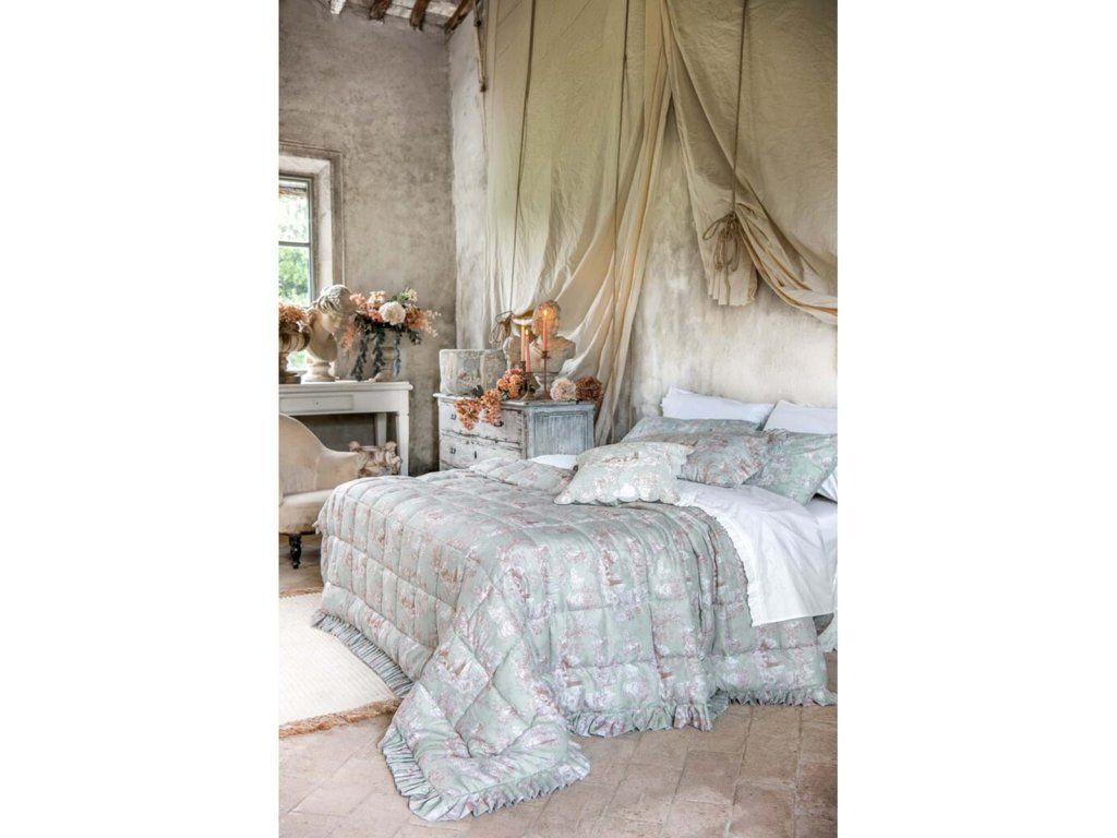 Elegantný prešívaný prehoz od značky Blanc Mariclò z kolekcie Toile du Borgo je ideálnym doplnkom pre útulnú a štýlovú spálňu. Modrozelené prevedenie pôsobí jemne, nadčasovo a ľahko sa kombinuje s rôznymi interiérovými štýlmi.