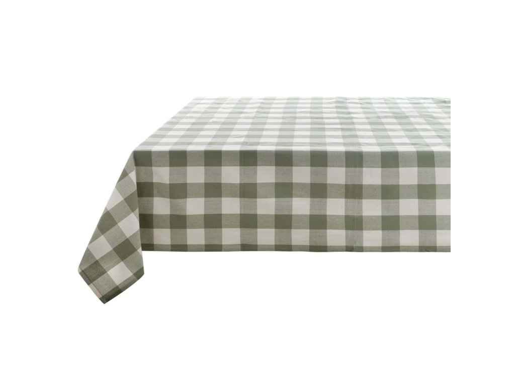 Zeleno‑biely károvaný obrus 150 × 190 cm – Blanc Mariclò (70 % bavlna, 30 % syntetika).