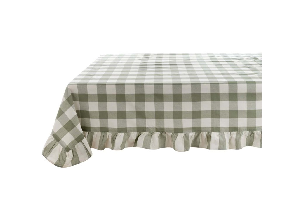 Zeleno‑biely károvaný obrus s 10 cm volánom 160 × 200 cm – kolekcia Bolgheri, Blanc Mariclò.