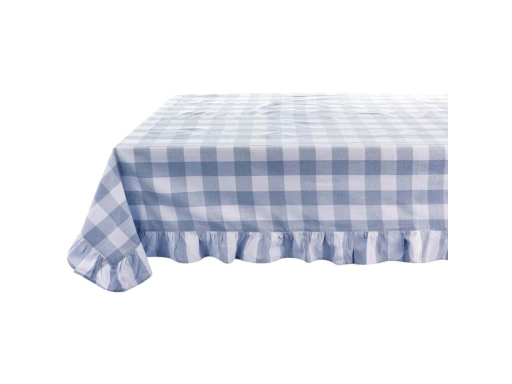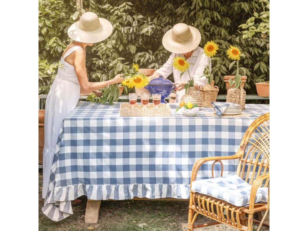 Modro‑biely károvaný obrus s 10 cm volánom 170 × 300 cm – kolekcia Bolgheri, Blanc Mariclò.
