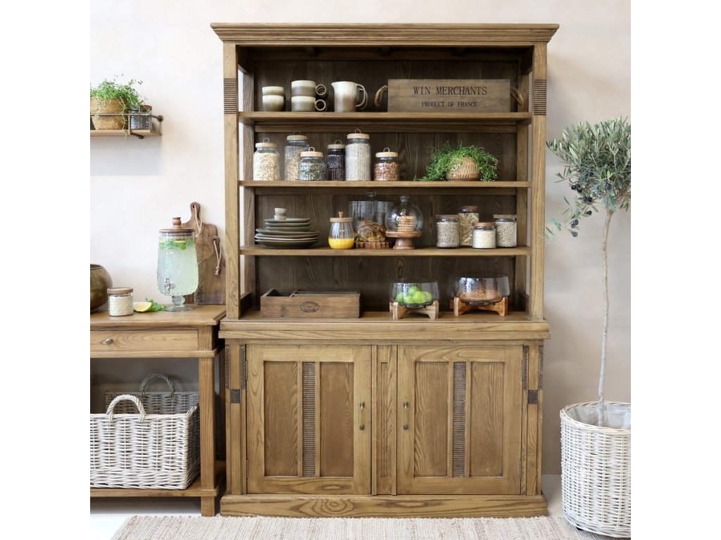 výška: 196 cm • dĺžka: 135 cm • šírka: 45 cm • materiál: topoľové drevo, preglejka • farba: prírodná (nature) • nosnosť police: 10 kg • hmotnosť brutto: 85,5 kg • hmotnosť netto: 83,0 kg • štýl: francúzsky vidiek / vintage • použitie: obývačka, jedáleň, kuchyňa