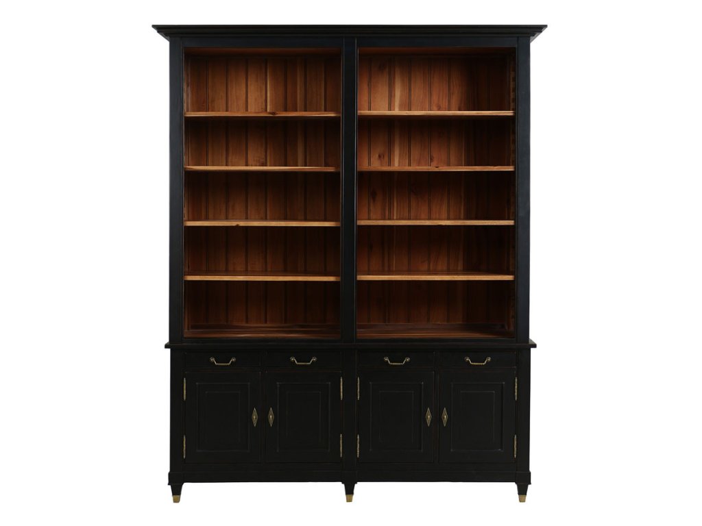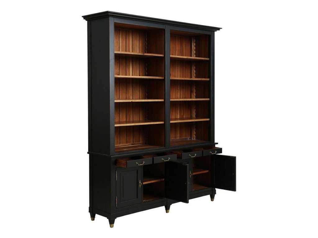 Nádherná masívna knižnica s dvierkami, zásuvkami a policami z kolekcie Cénacle Noir. Zhotovené z masívneho exotického dreva Acacie.