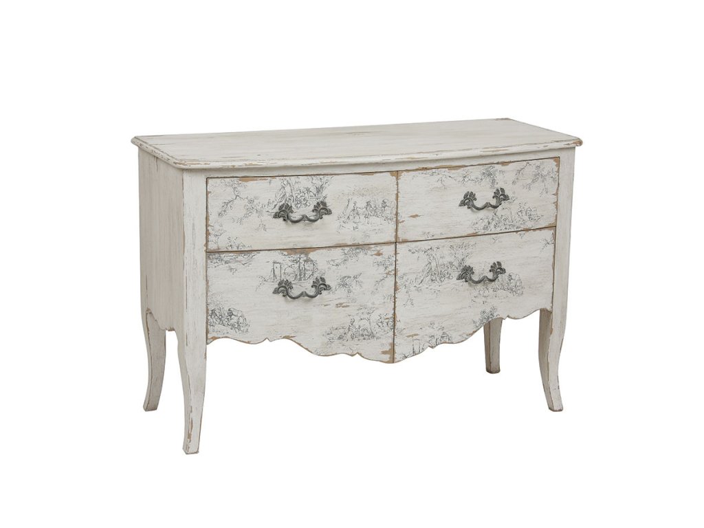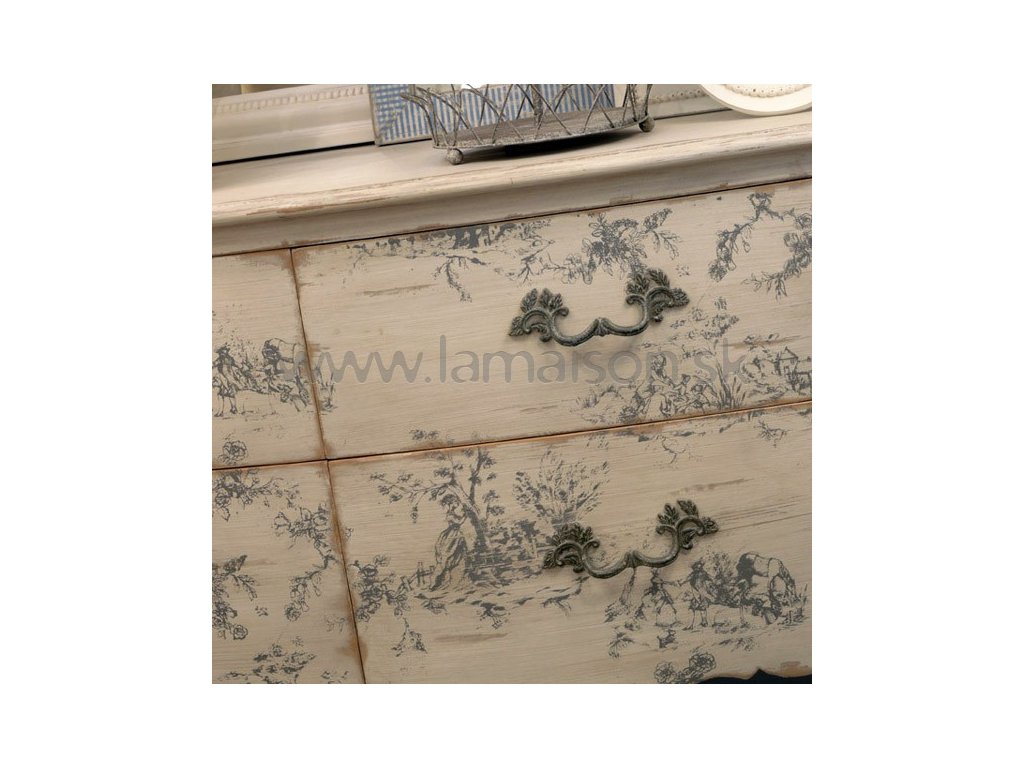 Originálna komoda zo série Florentin je ručne maľovaná a remeselnícky stvárnená. Jej krásna jemná farba a vzor okamžite oživí váš interiér. Komoda má 4 zásuvky s tepanými úchytkami.