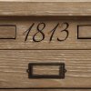 Smreková komoda z kolekcie Livingstone vám ponúka krásny charakteristický kus nábytku v duchu starého remeselného nábytku. 4 veľké zásuvky sú praktické na každodennú organizáciu v spálni alebo kancelárii. Ako pocta slávnemu cestovateľovi Davidovi Linvingstonovi je na hornej lište vyrytý rok jeho narodenia 1873, čo dodáva komode historický štýl.