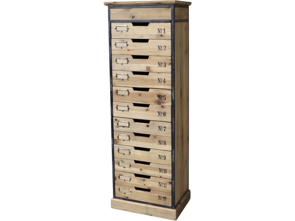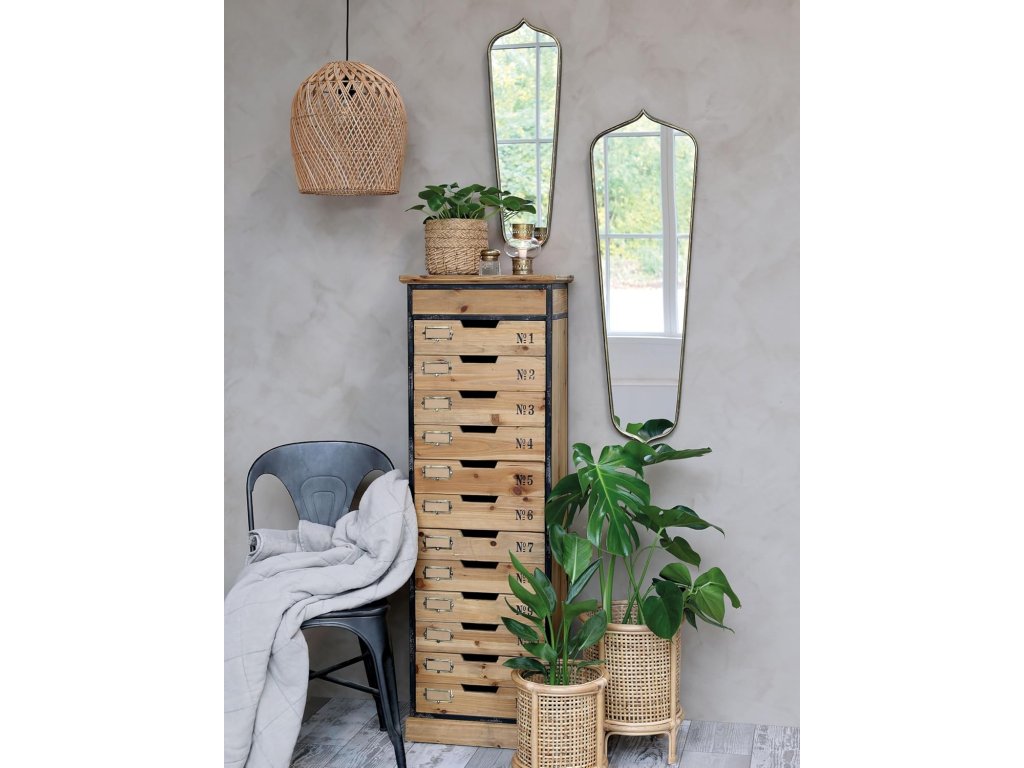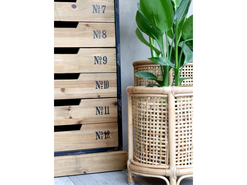 Drevená komoda so 9ks drevenými zásuvkami zo série Wicker od dánskeho výrobcu Chic Antique. Kovový rám a štítky s číslicami.