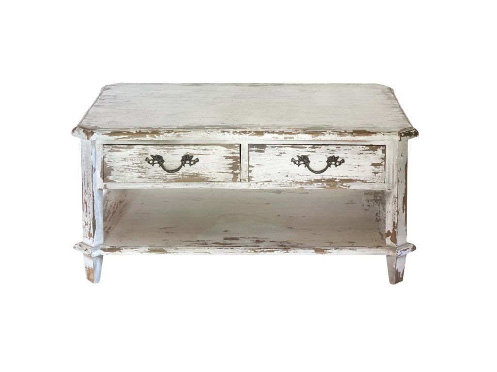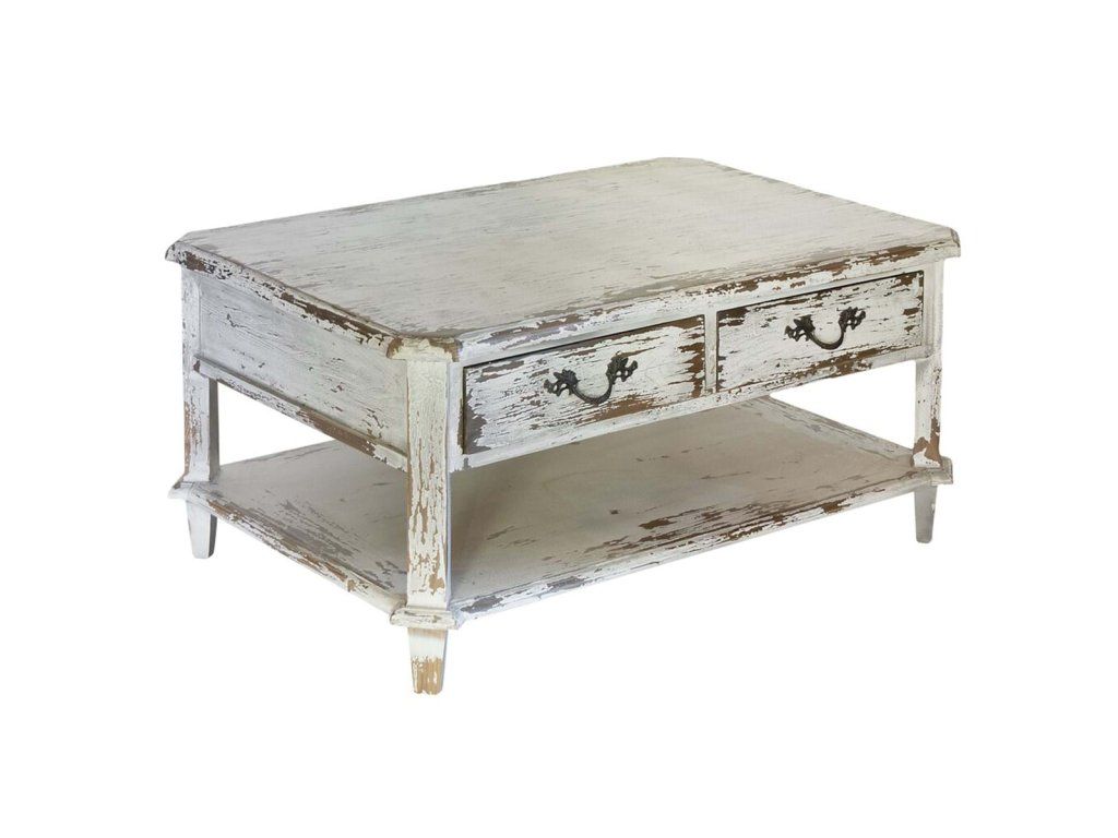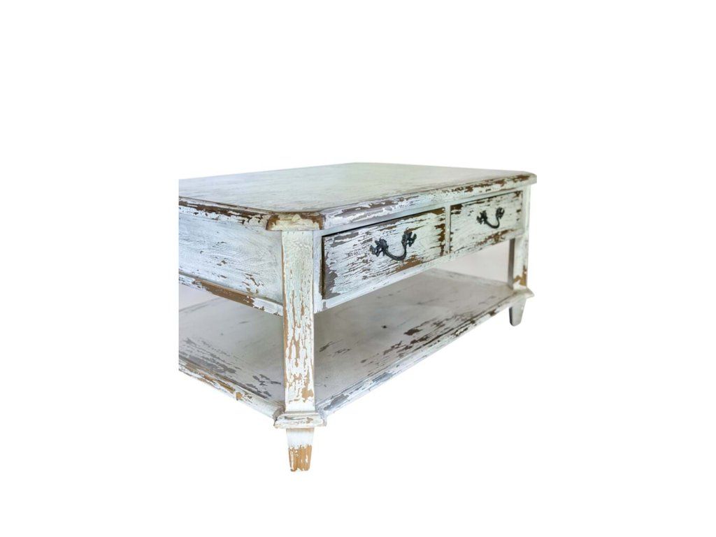 materiál: brestové drevo • farba: hnedá / silná biela patina • štýl: vintage / rustikálny / farmhouse • použitie: interiér – konferenčný stolík • výrobca: Blanc Mariclò