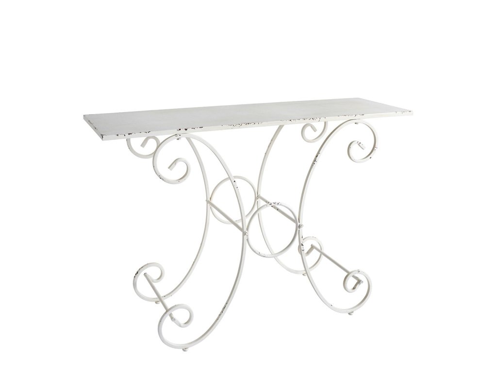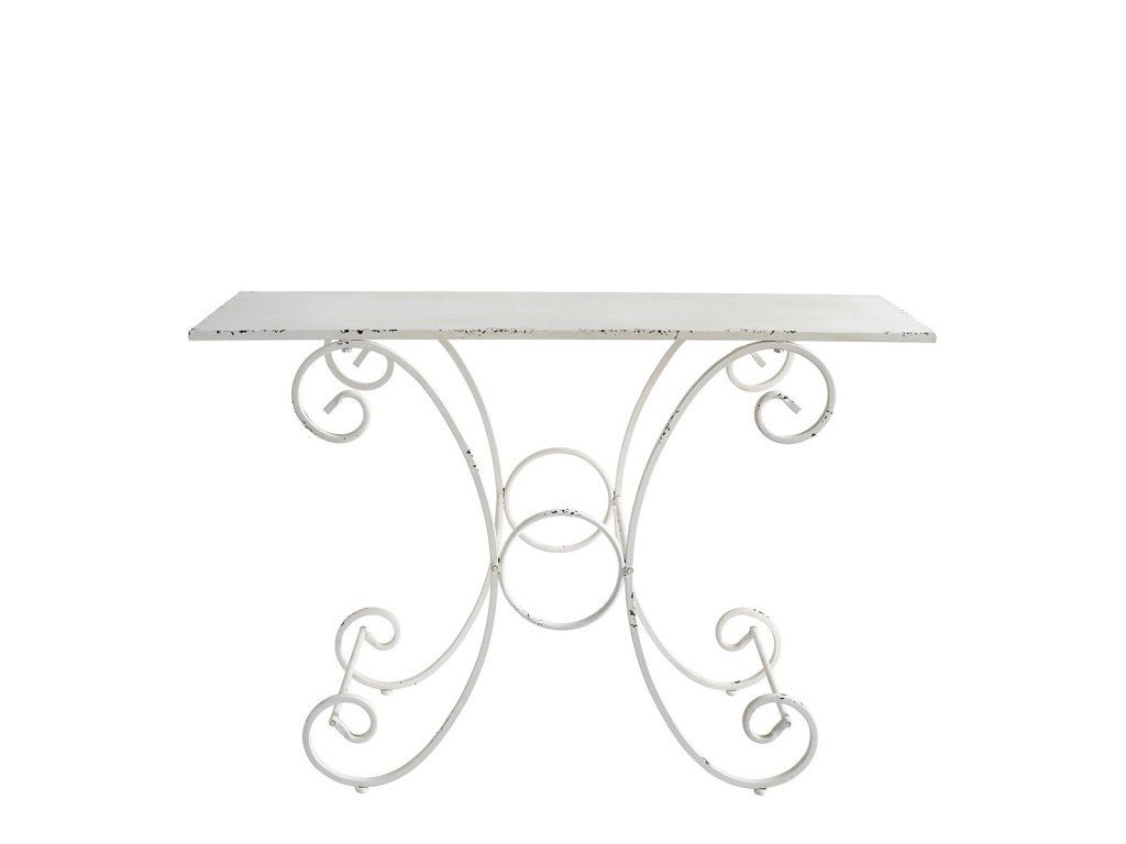Biely kovový konzolový stolík Champêtre, ideálny do obývačky, do vchodu, alebo na záhradu v štýle shabby chic.