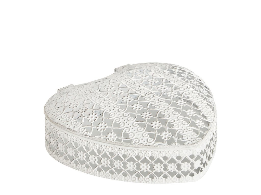 Romantizmus sa do vašej výzdoby vnáša touto jemnou šperkovnicou v tvare srdca. Jemne spracovaná odhaľuje elegantnú otvorenú dekoráciu s kvetinovými arabeskami, ktoré jej dávajú čaro vzácneho predmetu. Jeho vyblednutý kovový povrch prináša jemnosť a lesk, pre dielo, ktoré je zároveň jemné a nadčasové.