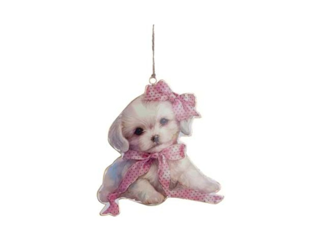rozmery: 11 × 18 cm • materiál: kov • kolekcia: Coco • motív: psík s mašličkou • uchytenie: špagátik na zavesenie • štýl: vidiecky / romantický • použitie: dekorácia