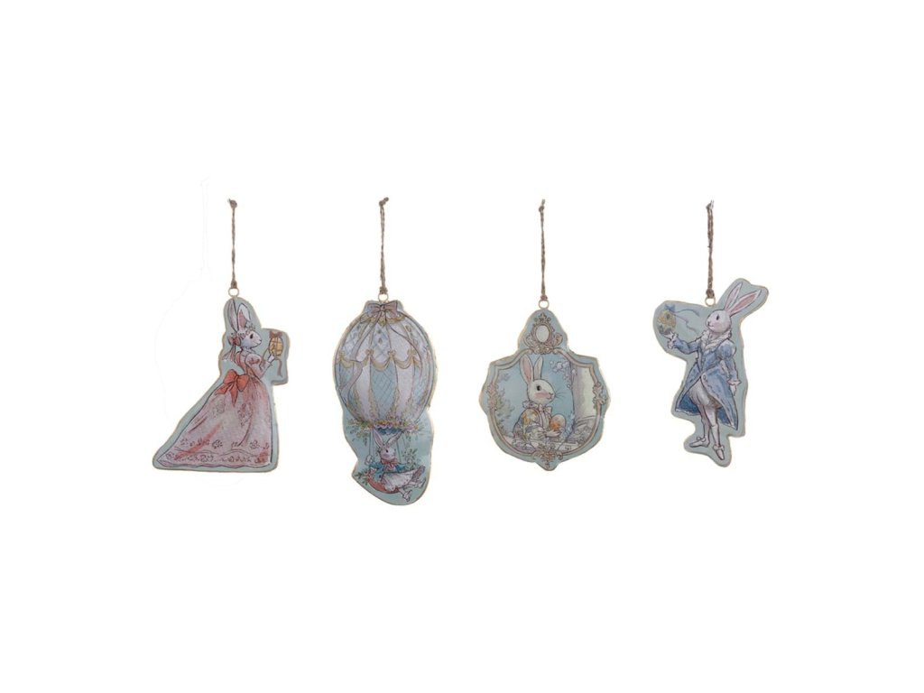 Romantická závesná dekorácia s motívom zajačikov z kolekcie Rococo je jemným veľkonočným doplnkom do interiéru. Kovové prevedenie a dekoratívny špagátik na zavesenie umožňujú ozdobu jednoducho umiestniť na dvere, okno, veľkonočný stromček alebo jarný veniec.