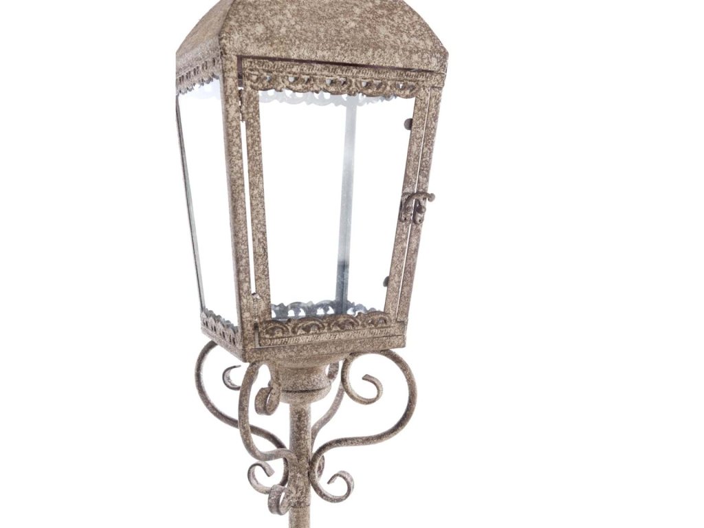 Kovová vysoká stojatá lampa – lanterna na sviečku s pevnou kovovou konštrukciou a sklenenou výplňou, ktorá vytvára elegantnú a útulnú atmosféru v interiéri aj exteriéri. Tento štýlový dekoratívny kúsok pochádza z kolekcie Memoriae a nesie originálny rukopis značky Blanc Mariclò. Nadčasový vintage dizajn, kvalitné spracovanie a výrazný charakter robia z lanterny výnimočný doplnok na terasu, verandu, do obývačky či haly. Perfektná pre milovníkov romantického a francúzskeho štýlu.