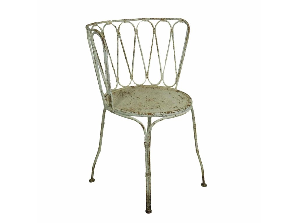 Jedinečná kovová stolička do záhrady s patinovaným vzhľadom vo francúzskom štýle. Vhodná do záhrady a exteriéru. Materiál môže časom hrdzavie (kov). Originálny produkt z dielne Blanc Mariclo.