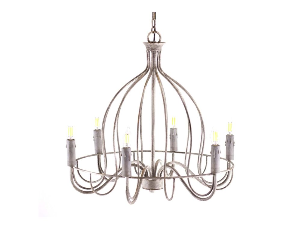výška: 60 cm • priemer: 62 cm • materiál: kov • farba: bielo-sivý kov • štýl: romantický vintage / francúzsky • použitie: interiérové osvetlenie • výrobca: Blanc Mariclò