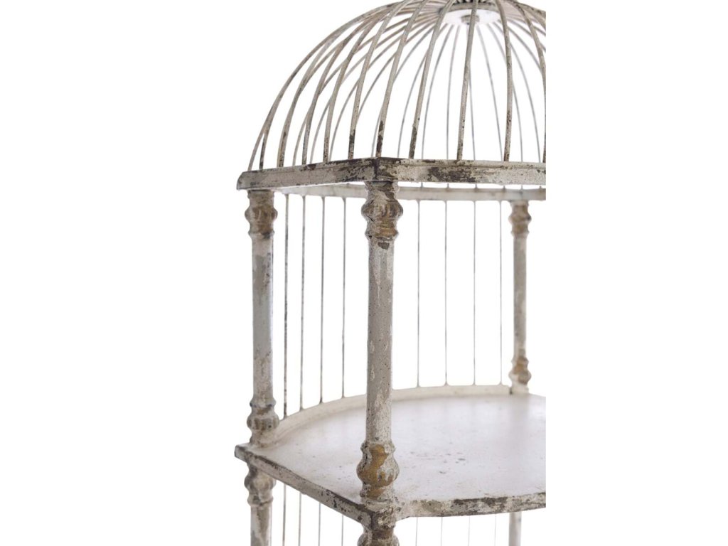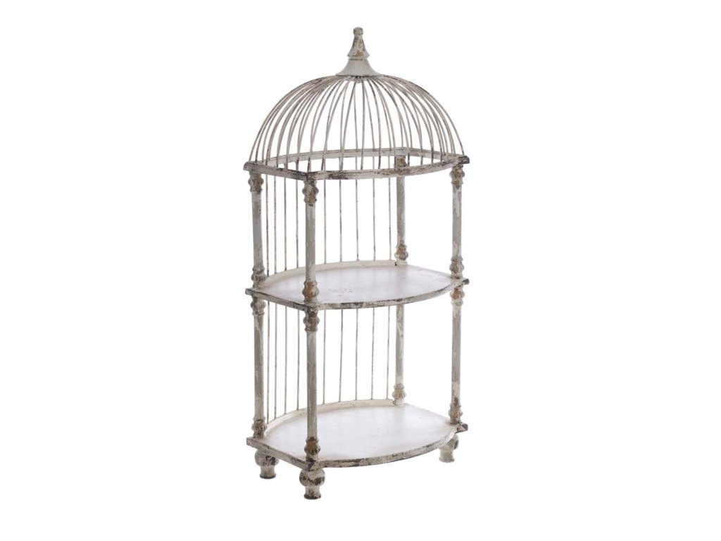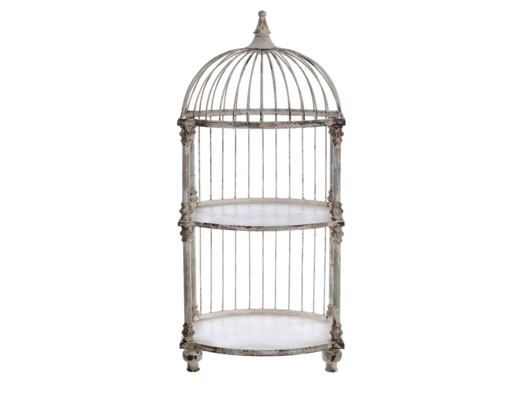 Originálny etažér v tvare klietky v kovovom patinovanom prevedení z kolekcie Intarsi z dielne Blanc Mariclo.