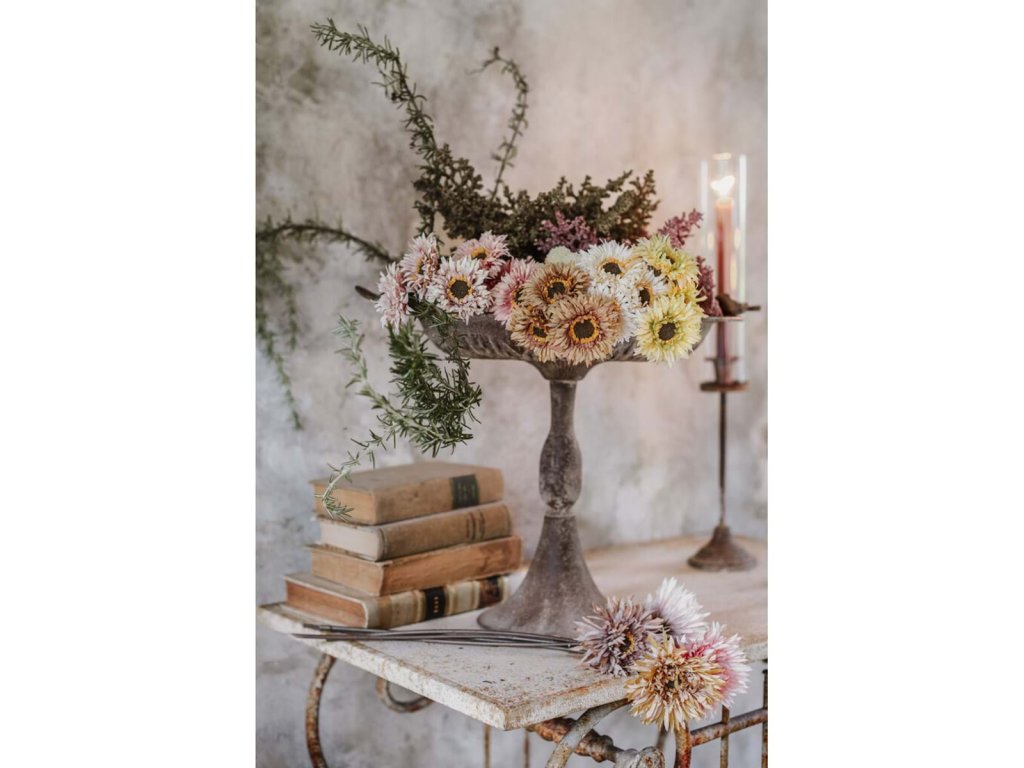 Kovový podstavec na nohe s výškou 37 cm, doplnený o malých vtáčikov, ktorý dodáva dekorácii jemný romantický akcent. Tento elegantný kúsok pochádza z kolekcie Memoriae a nesie originálny rukopis značky Blanc Mariclò. Vďaka svojmu vintage vzhľadu, detailnému spracovaniu a univerzálnemu využitiu sa stane štýlovým doplnkom do interiéru aj exteriéru. Ideálny pre milovníkov francúzskeho šarmu a nadčasových dekorácií.