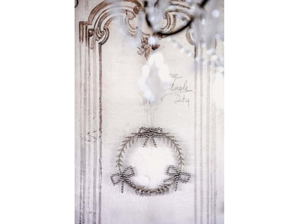 Elegantný vianočný veniec od toskánskeho výrobcu Blanc Mariclò je originálnym doplnkom sviatočného interiéru. Vyrobený z kovu v striebornej farbe, zdobený štrasmi a dekoratívnymi sklíčkami, pôsobí luxusne a zároveň jemne. Vďaka svojmu spracovaniu vynikne na dverách, stene alebo ako súčasť stolovej dekorácie.