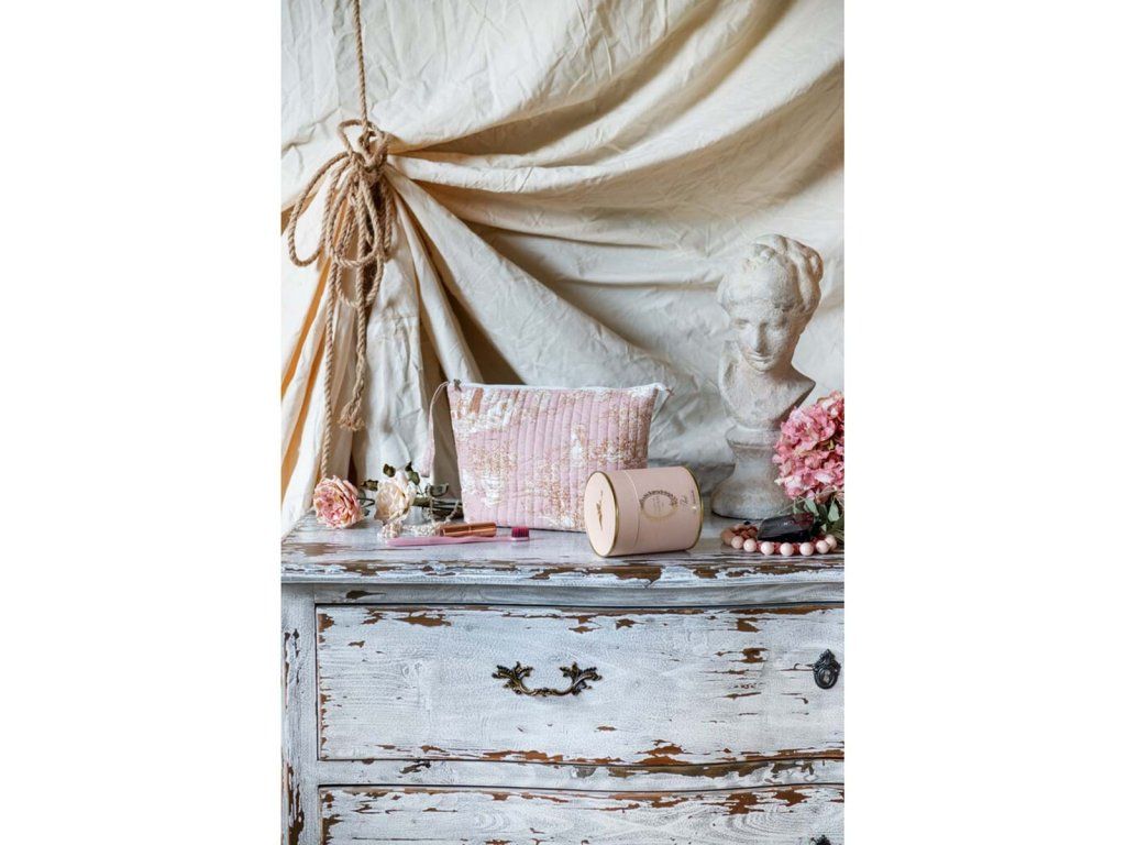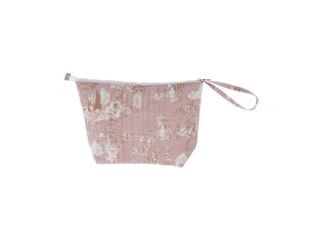 rozmer: 30 × 20 × 9 cm • materiál: 100 % bavlna • farba: ružová • vlastnosti: zips • štýl: romantický / vintage / francúzsky • použitie: kozmetická taštička / organizér • výrobca: Blanc Mariclò