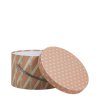Krabica stredná na klobúk z papiera, oválna, potlač s motívom. Textilná rukoväť.